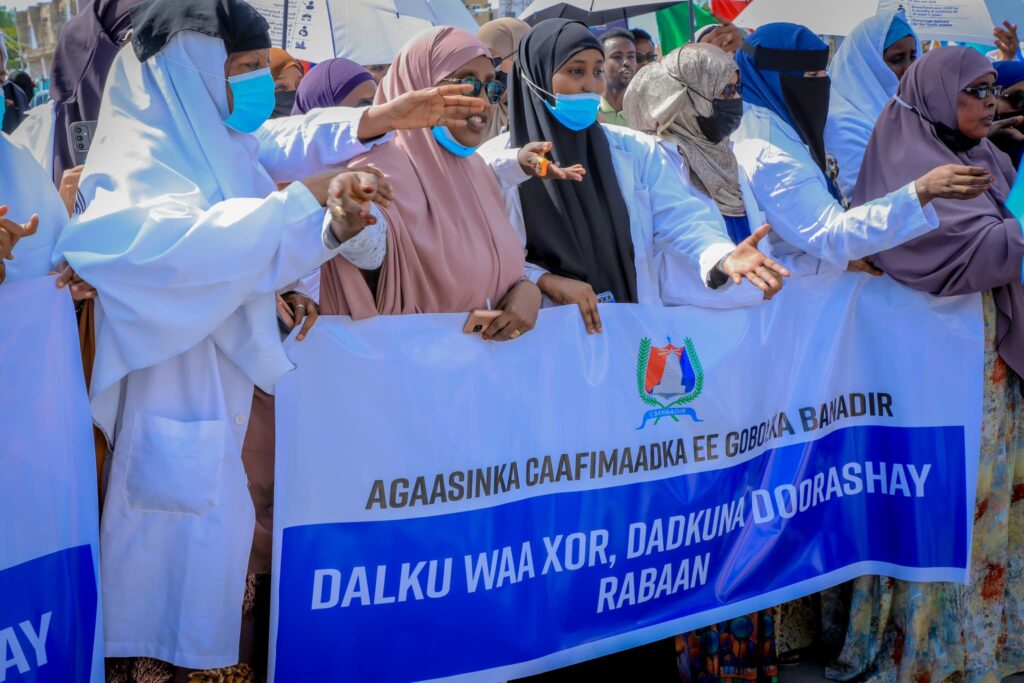 Guddoomiyaha Gobolka Banaadir ahna Duqa Magaalada Muqdisho ayaa ka qeyb-galay isku soo bax balaaran oo Bulshada Caasimadda Muqdisho ay ku taageerayeen Go’aankii labada Aqal ee Baarlamaanka Jamhuuriyadda Federaalka Soomaaliya ay ku meel mariyeen xeerarkii Doorashooyinka, Xisbiyadda iyo Guddiga Doorashada iyo Sohdimaha dalka.