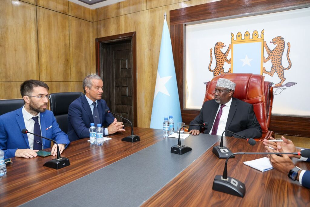 Guddoomiyaha Golaha Shacabka ee Baarlamaanka Soomaaliya Sheekh Aadan Maxamed Nuur (Madoobe) ayaa xafiiskiisa ku qaabilay Safiirka Dowladda Talyaaniga u fadhiya Soomaallya Danjire Pier Mario Docco Coppi, waxa ayna ka wada hadleen xoojinta xiriirka iyo saaxiibtinimada labada dal.