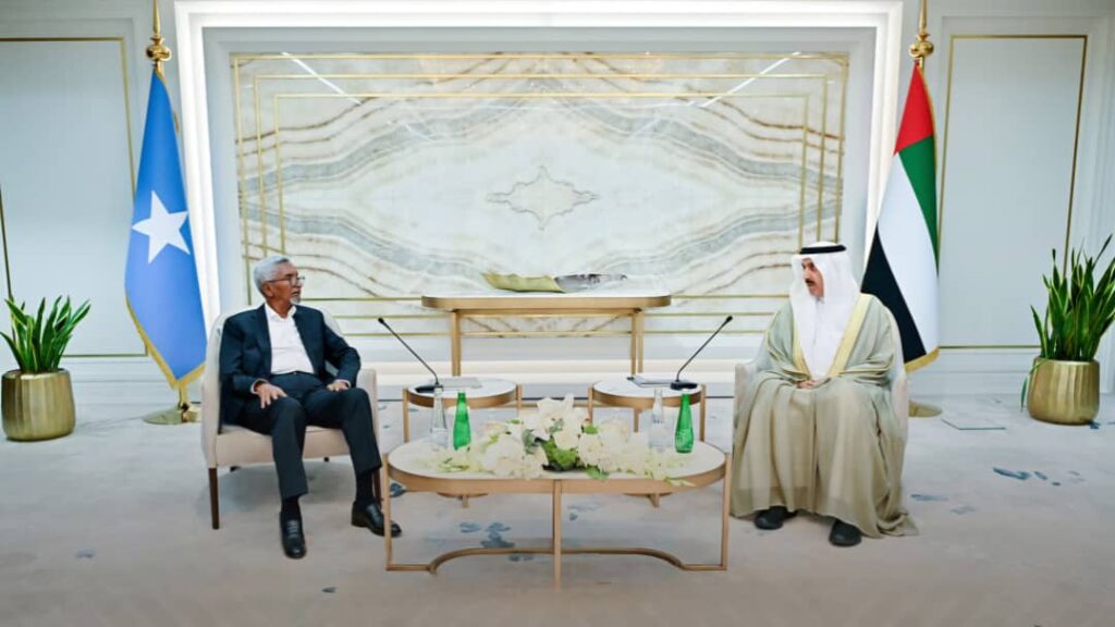 Guddoomiyaha Aqalka Sare ee Baarlamaanka Jamhuuriyadda Federaalka Soomaaliya Mudane Cabdi Xaashi Cabdullaahi iyo wafdi uu hoggaaminayo oo booqasho rasmi ah ku jooga dalka Imaaraatka Carabta, ayaa kulan la qaatay Guddoomiyaha Golaha Midnimada Qaran ee Dowladda Imaaraatka Carabta Mudane Saqar Gabaash iyo xubno ka tirsan Golahaas.
