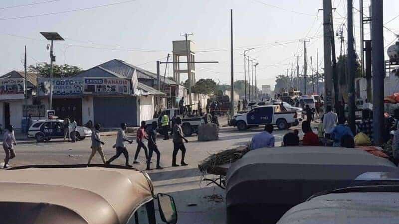 Government forces and armed civilians protesting against displacement have been fighting since last night until this morning at Horseed Stadium where the Somali Military’s Horseed football team used to be.