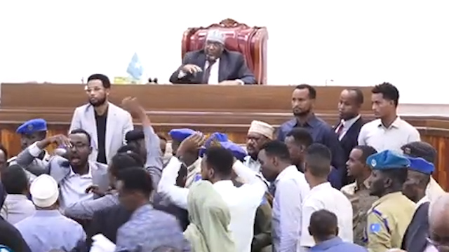 Xubno kamid ah xildhibaanada ayaa isku gacan qaaday, iyada oo la arkayay Booliska ka shaqeeya xarunta Baarlamaanka oo  soo farageliyay  xaalada.