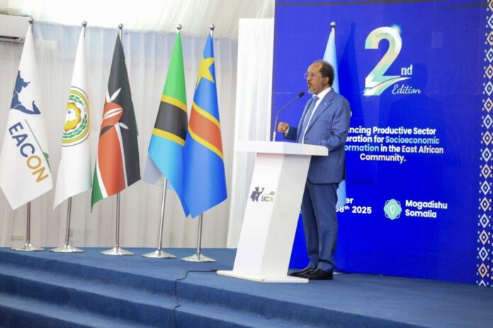 Muqdisho, Oktoobar 07, 2025; Madaxweynaha Jamhuuriyadda Federaalka Soomaaliya Mudane Xasan Sheekh Maxamuud ayaa maanta furay Shirka Iskaashiga Ganacsiga Dalalka Bariga Afrika oo markii 2-aad ay martigelinayso Caasimadda Muqdisho, kaas oo lagaga arrinaanayo isdhexgalka dhaqaale, siyaasadeed iyo bulsho ee gobolka.
