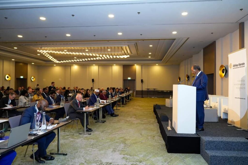 Madaxweynaha Jamhuuriyadda Federaalka Soomaaliya Mudane Xasan Sheekh Maxamuud oo ka qeybgalay Shirka Maalgashiga Jarmalka iyo Afrika ayaa soo bandhigay fursadaha maalgashi ee ka jira dalkeenna iyo dadaallada dowladda ee horumarka iyo xasilloonida.