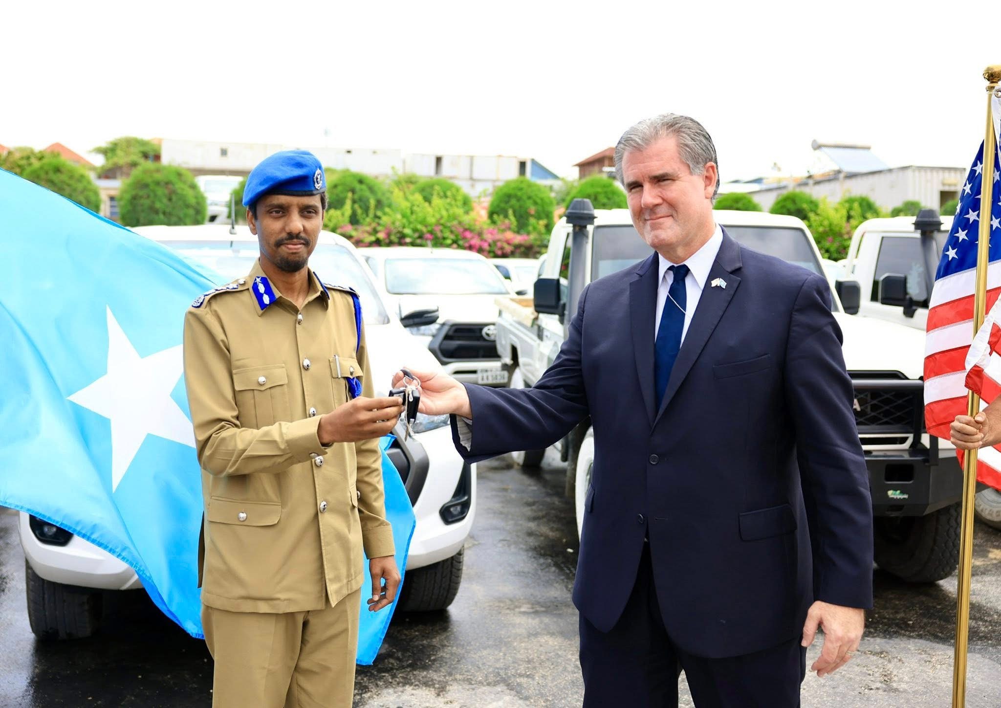 Taliyaha Ciidanka Booliiska Soomaaliyeed, Sarreeye Guuto Asad Cismaan Cabdullaahi, ayaa maanta si rasmi ah ugala wareegay Safiir ku-xigeenka Safaaradda Mareykanka ee Soomaaliya, Mr. Steven Gillen, gaadiid casri ah oo loogu talagalay la-dagaallanka argagixisada.