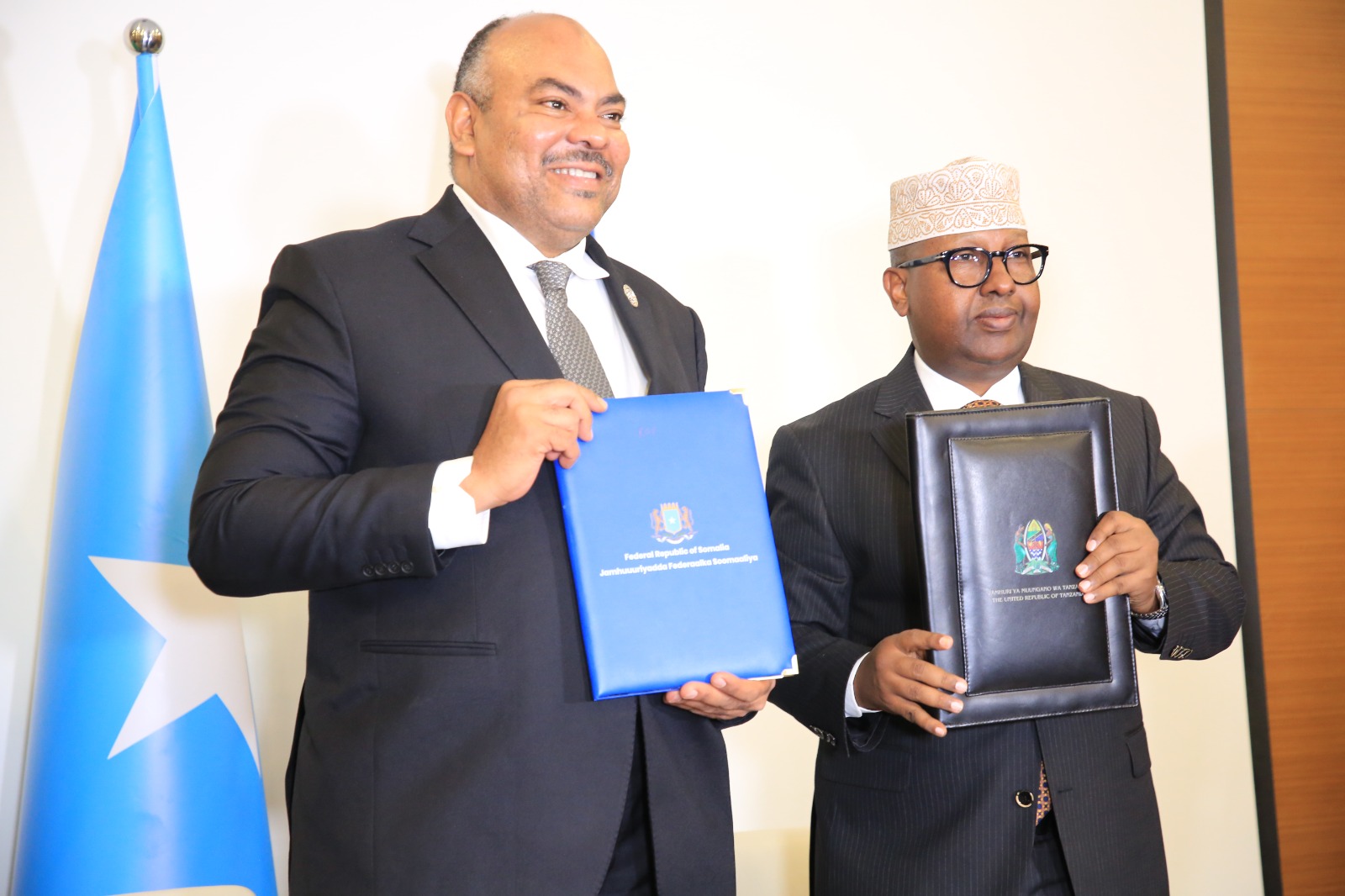 Wafdiga Tanzania ee saxiixa heshiiskaan Muqdisho u yimid waxaa hoggaaminaya Wasiirka Arrimaha Dubedda Dalka Tanzania, Mudane Mohamud Thabit Kombo, waxaana qeyb ka ah Wasiirka Kheyraadka iyo Dalxiiska Pindi Hazara, Wasiir ku xigeenka Caafimaadka Dr. Godwin Mollel iyo Taliye ku xigeenka Ciidamada Dowladda Tanzania, Saalim Haji Osman.