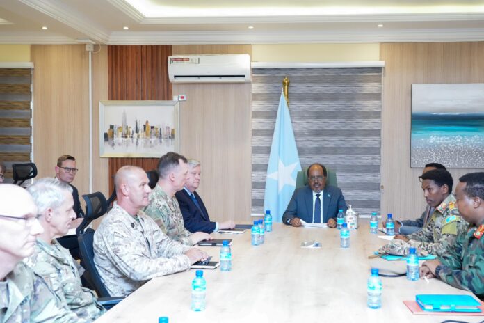 President Hassan Sheikh received the new Commander of the U.S. Africa Command (AFRICOM), General Dagvin R.M. Anderson, along with Ambassador Richard H. Riley.
