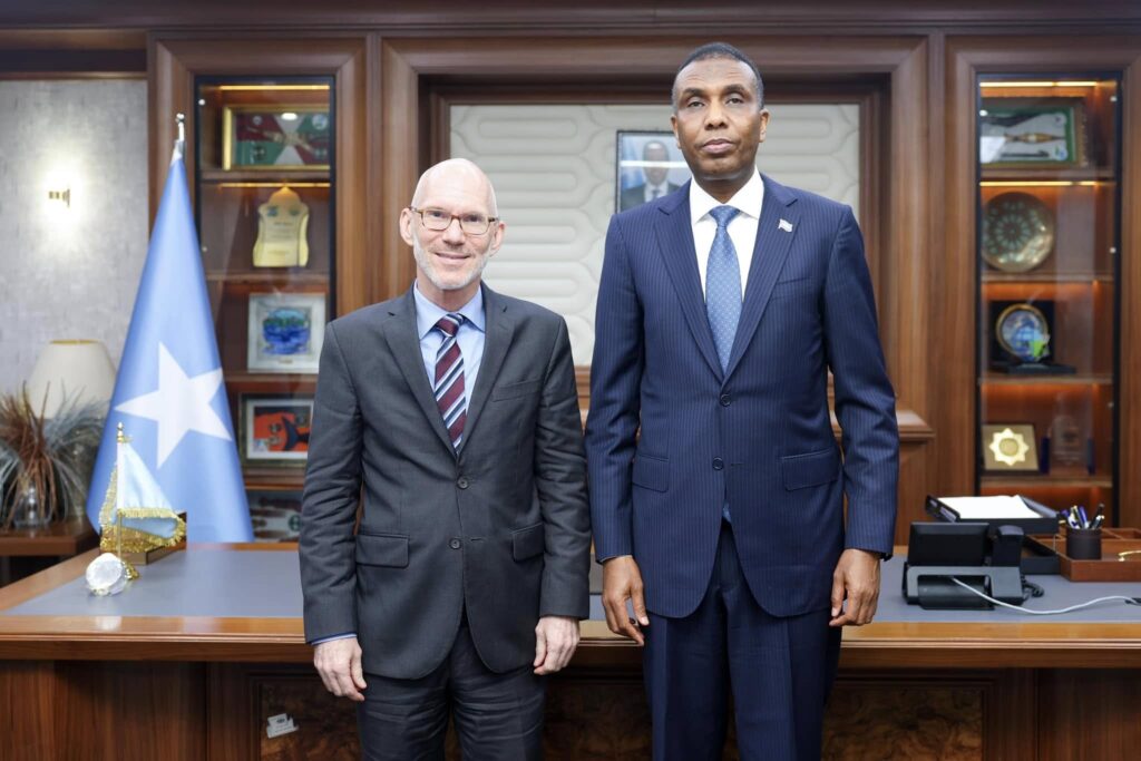 Ra’iisul Wasaaraha Xukuumadda Jamhuuriyadda Federaalka Soomaaliya, Xamsa Cabdi Barre, ayaa xafiiskiisa ku qaabilay Ku-simaha Ergeyga Gaarka ah ee Xoghayaha Guud ee Qaramada Midoobay u qaabilsan Soomaaliya Danjire James Swan.
