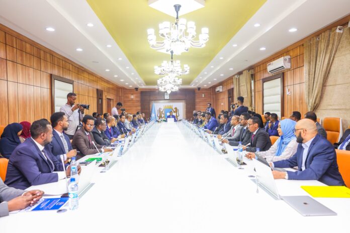 Muqdisho, Talaado, 19 Ogoosto 2025: โ Raโiisul Wasaaraha Xukuumadda Jamhuuriyadda Federaalka Soomaaliya, Mudane Xamsa Cabdi Barre, oo ku guda jira barnaamijka la-xisaabtanka Xukuumaddiisa, ayaa maanta suโaallo ka weydiiyey, waxyaabaha uga hirgalay heshiiskii ay kala saxiixdeen sanad ka hor ee ku aaddanaa barnaamijyada horutabinta u leh wasaaradaha kala ah, Arrimaha Gudaha Federaalka iyo Dib -u-heshiisiinta, Arrimaha Dibadda iyo Iskaashiga Caalamiga ah, Amniga Gudaha, Gaashaandhigga, Caddaaladda iyo Arrimaha Dastuurka, Deegaanka iyo Isbeddelka Cimillada.