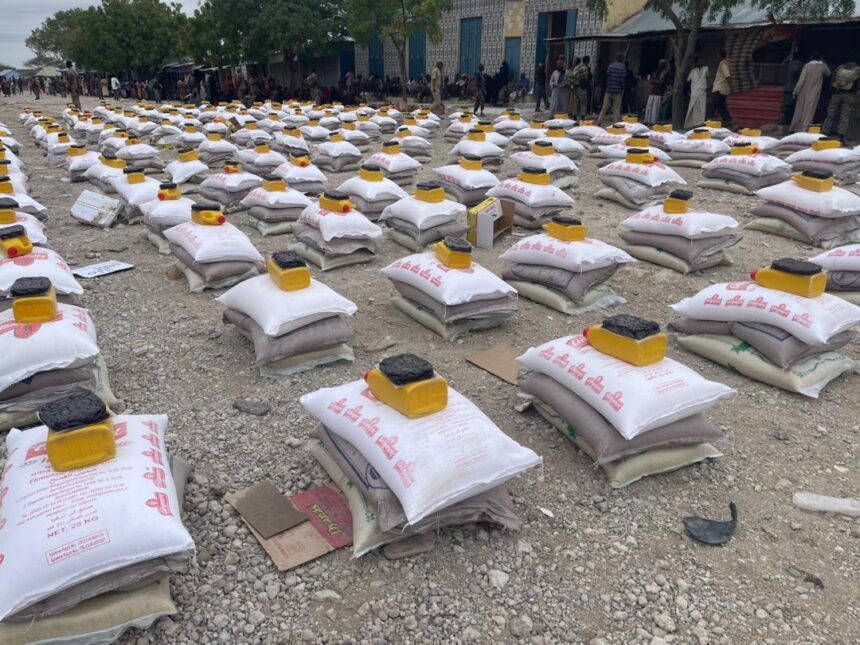 The National Disaster Management Agency of SoDMA, under the Ministry of Relief and Disaster Management of the Jubbaland state government, yesterday delivered food donations to the displaced people who reached Yurkud area in Gedo region.