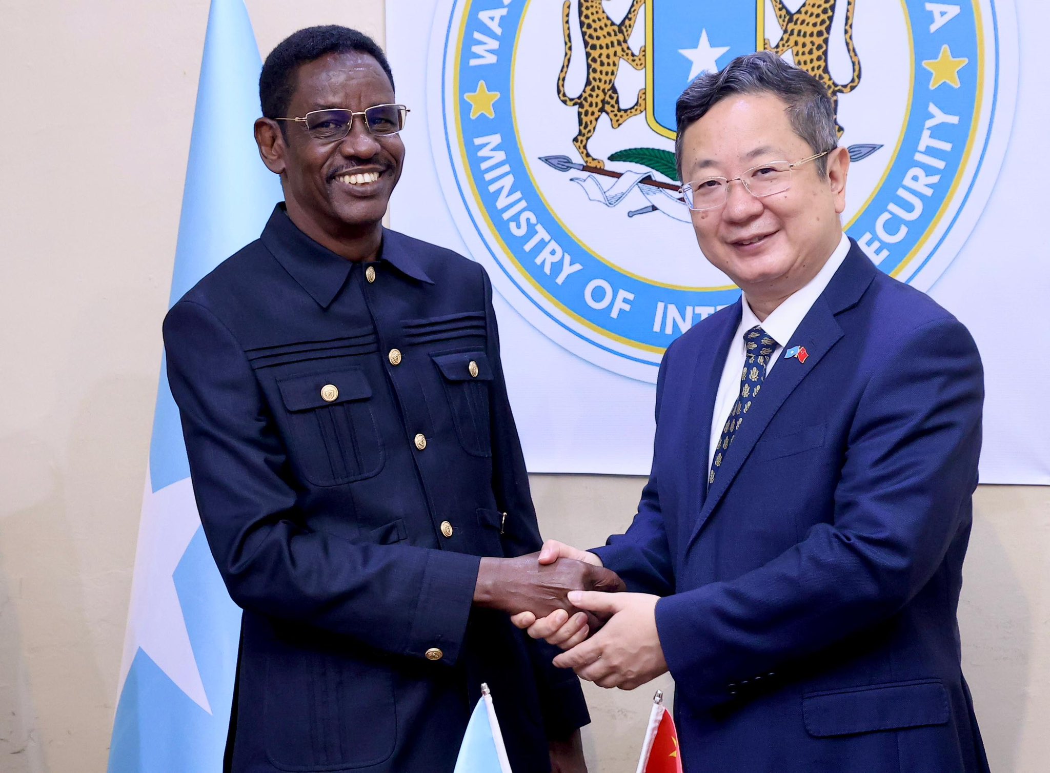 The Federal Minister of Internal Security in Somalia Abdullahi Shiikh Ismail Fartag held a special meeting with Chinese Ambassador to Somalia Amb Wang Yu , discussed the security and cooperation of the two countries, with China announcing its support for the dangers of mines on the ground.