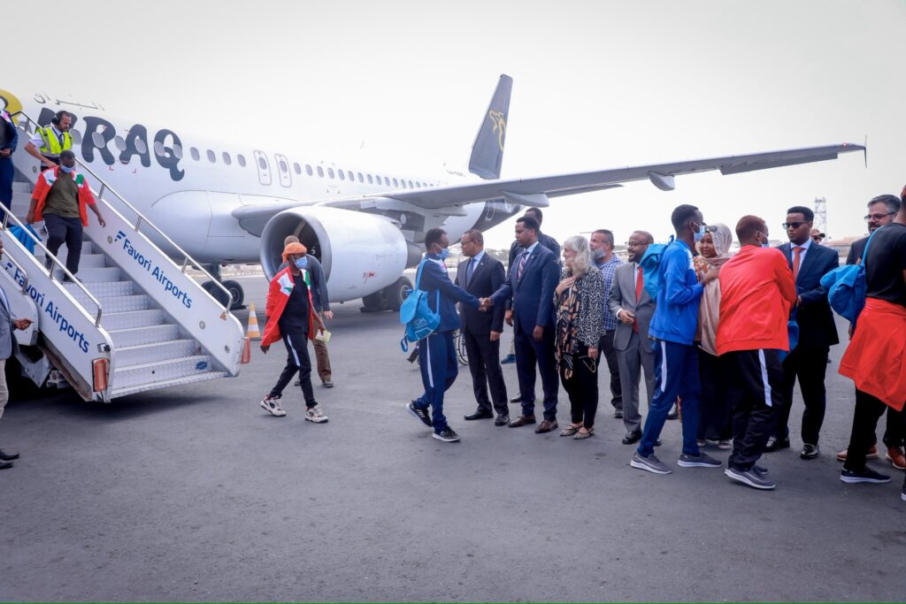 At Aden Abdulla International Airport, the returning citizens were welcomed by the Second Deputy Prime Minister of the Federal Government of Somalia, H.E. Jibril Abdirashid Haji Abdi, the Deputy Minister of Foreign Affairs and International Cooperation, Hon. Mr. Isaak Mohamud Mursal, other government officials, EU and IOM representatives.