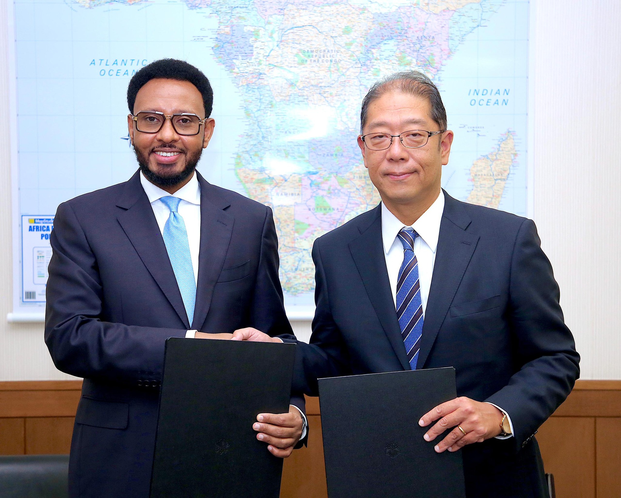 Wasiirka Maaliyadda XFS Mudane Biixi Imaan Cige iyo Safiirka Dowladda Japan ee Dalka Kenya Mr. OGIHARA Hiroshi ayaa maanta si wadajir ah u saxiixay heshiis Dowladda Japan ay ku cafinayso lacag dhan 14-Bilyan oo lacagta Japan ah, doolar ahaan u dhiganta in ka badan Boqol Milyan oo Doolar.