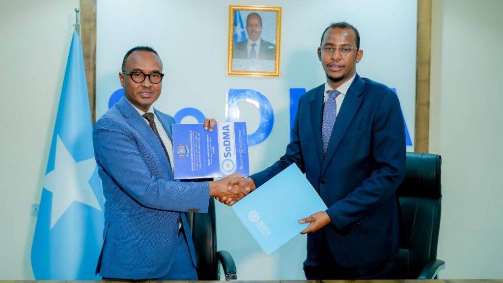 The Disaster Management Agency (SoDMA) and the Identification and Registration Agency (NIRA) have signed a cooperation agreement on linking the modern National Identification System with the disaster management and humanitarian aid system.
